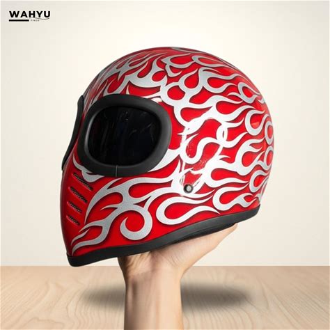 New! Custom Vintage Helmet XF-GP Alien White Flame Cafe Racer Style Motorcycle Cafe Bobber
