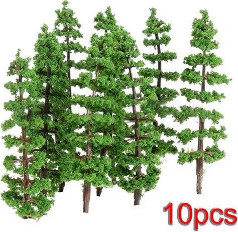 10Pcs Pine Trees Model Train Railway Building Green Model Tree For N / OO Gauge Scale Railroad