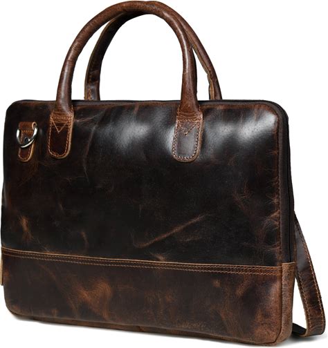 Leather Laptop Briefcase Bag For Men | Best Slim Leather Computer Bag For 15 Inch Laptops | Finest Vintage Buffalo Leather, Dark Brown / 16-Inch