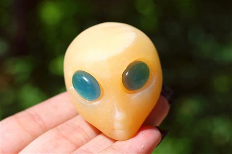 Hand Carved Quartz Crystal Alien Skull: Healing Home Decor