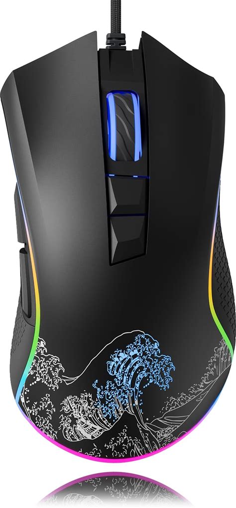 LEWENTECH Gaming Mouse 6 Adjustable DPI Up To 7200 Wired PC Gaming Mouse 8 Programmable Buttons 13 Adjustable RGB LED Modes 1.5 m Drag-Free Paracord