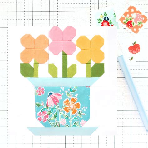 Flower Pot Quilt Block Pattern Spring PDF - Includes Instructions For 6 Inch, 9 Inch 12 Inch, 18 Inch And 24 Inch Blocks Traditional Piecing