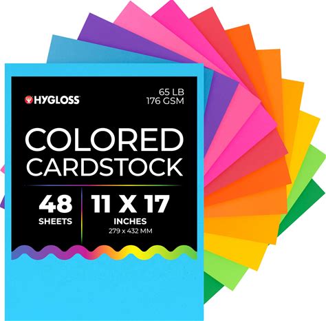 Hygloss Bright Colored Cardstock - 11X17-Inch, 12 Assorted Colors, 48 Sheets, 65 Lb/ 176 Gsm, Fade-Resistant, Acid-Free Color Card Stock Paper