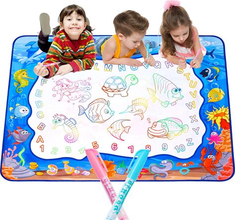 Large Water Doodle Mat For Toddlers, Magical Colourful, 39"×31" Mess Free Coloring Mat With 2 Water Pens, Educational Toy Gifts For Kids 3+ Year -