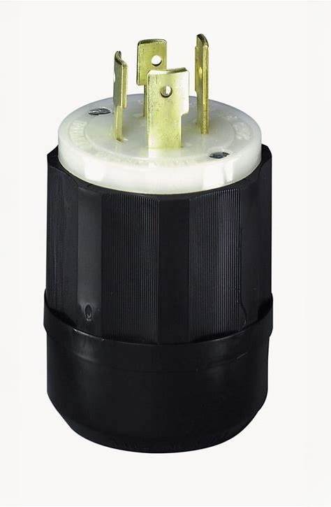 Leviton 20 Amp, 250 Volt 3-Phase, NEMA L15-20P, 3P, 4W, Locking Plug, Industrial Grade, Grounding, 2421, Black-White
