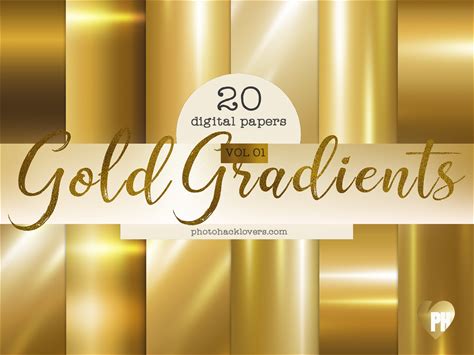 Gold Foil Glitter Metallic Digital Paper, Luxury Golden Gold Gradient Background Set