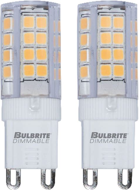 Bulbrite Pack Of (2) Clear Mini Bi-Pin (G9) LED Bulb - 400 Lumens, 3000K, And 80 CRI - 4.5 Watt Dimmable Clear Mini