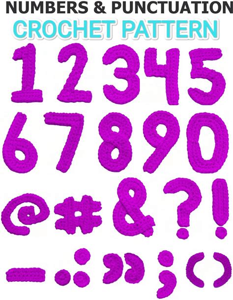 Crochet Pattern For Numbers, Crochet Pattern For Punctuation Marks, Crocheted Numbers From 0 To 9, Crochet Numbers And Punctuation Marks