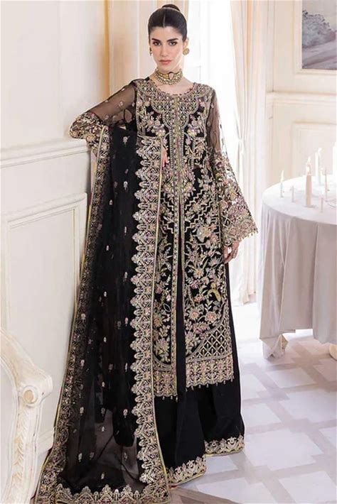 Black Organza Salwar Kameez: Pakistani Embroidered Wedding Suit