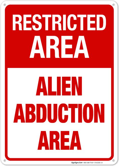 Restricted Area Sign | Alien Abduction Area | 7 X 10 | .040 Rust-Free Aluminum | Sigo Signs | Made In USA