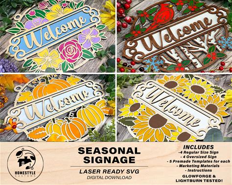 Seasonal Welcome Signage - Spring, Summer, Fall And Winter - 2 Variations, 5 Sayings Included For Each - Tested On Glowforge & Lightburn