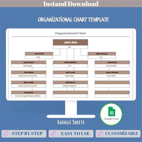 Editable Organizational Chart Template - Excel & Google Sheets - Customize Your Company Structure, Visualize Roles And Hierarchy