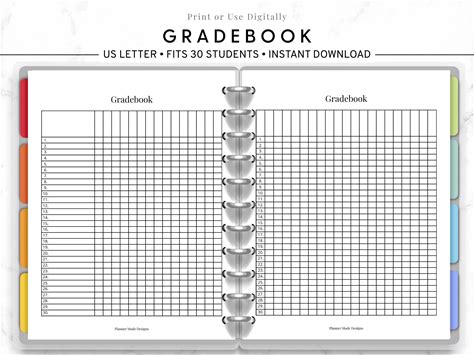 Printable Class Record, Gradebook Template, Teacher Grade Book, Attendance Sheet, School Planner Insert, Homeschool Grade Sheet, Grade Log