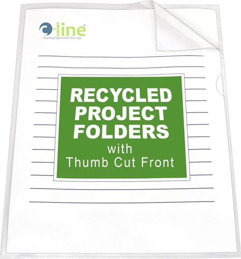 C-Line Recycled Project Folders With Thumb Cut Fronts, Reduced Glare, Letter Size, Clear, 25 Per Box (62127)