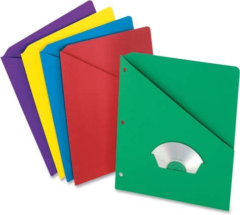 Pendaflex Slash-Pocket Project Folders With Holder For Cds/Dvds, 11" X 8 1/2", Assorted Colors, Pack Of 25 PFX32940